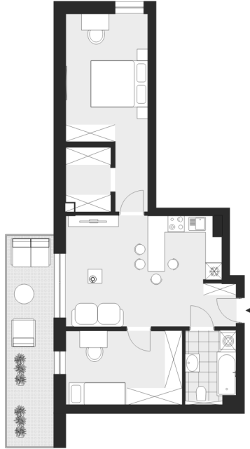 Zapraszamy do zapoznania się z ofertą 2-pokojowego mieszkania, składającego się z pokoju dziennego z aneksem kuchennym, sypialni, łazienki i balkonu.